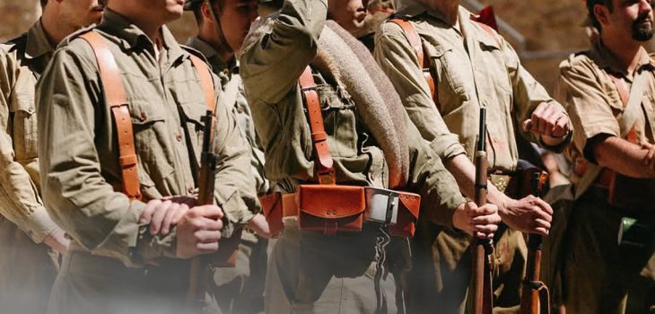 En el evento se recrean escenas de combate con armas de fuego, granadas y vehículos blindados de la época.